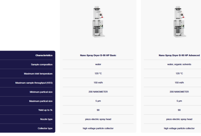 If you would like to produce small particles (0.2-5 µm) in a safe and controlled manner, then our Nano Spray Dryer B-90 HP fits your needs. With the Nano Srpay Dryer B-90 HP, you gain a larger surface contact area due to reduced particle size. The gentle process conditions help preserve molecular activity in your compounds of interest.