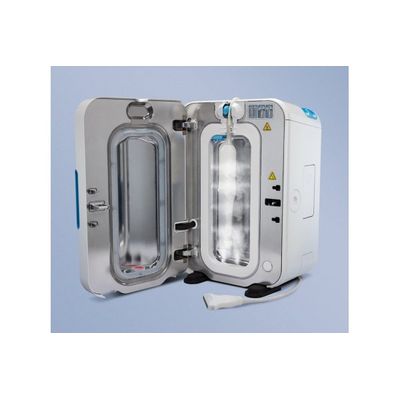 After disinfection, residual hydrogen peroxide is blown out of the chamber and passes through destructors, where it is broken down into environmentally friendly oxygen and water.