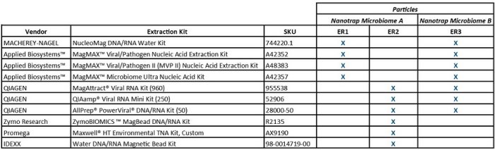 Improve microbe detection in wastewater samples by at least 1-2 Ct values using Nanotrap Enhancement Reagents with Nanotrap Microbiome Particles. No negative impact on recovery of controls. Automation friendly when paired with Nanotrap Microbiome Particles. Convenient workflow: add to your wastewater sample at the same time as Nanotrap Particles or add to your wastewater samples up to 18 hours before you add Nanotrap Particles. Non-hazardous, non-perishable reagents, room temperature storage. Ready to ship in 10 mL or 30 mL vials. Use 0.1 mL of reagent for each 10 mL wastewater sample. SKU# 10113-10, 10113-30.