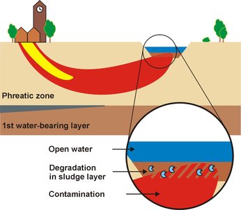 Nawabo, the sustainable, effective biological filter for groundwater contamination. Nawabo is a concept developed by Bioclear earth, in which the sediments itself is actively utilised for the remediation of contaminated groundwater. Nawabo stands for natural degradation in sediments. We control the contamination by utilising the biological processes, which naturally occur in sediments. Bacteria present in the sludge degrade the contaminants in the groundwater, before the groundwater reaches the surface water.
