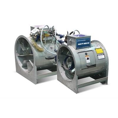 Venturi burner for maximum efficiency. Heavy duty cast iron venturi tube. Plugs directly into NECO axial fans. Available for 24” and 28”. Galvanized construction. Plumbed and wired for connection to fan and fuel.