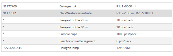 • Reaction tray 120 reusable plastic cuvettes in 6 segments (7 mm optical path)