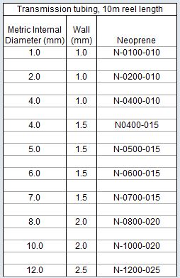 Neoprene offers good chemical resistance and is widely used for the transfer of air and liquids but not oils. It also exhibits good anti-ageing properties and high tear strength. Neoprene is relatively low friction tubing, with good abrasion resistance properties.