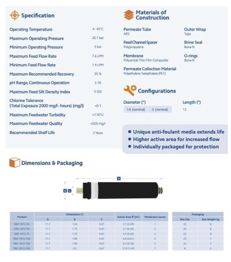 - 5 systems are included in the range to meet RO water production levels of 150 to 1250 litres per hour.