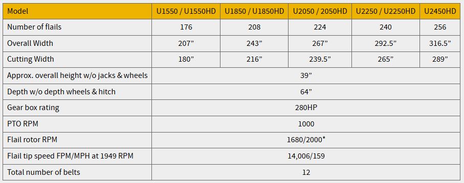 HD machines have a heavier drum, with larger flails that pivot on a 1" pin instead of a 5/8" bolt. *22-foot and 24-foot flail shredders are not available in 2000 RPM.