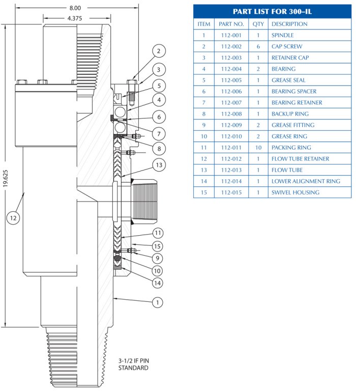 - Standard lower connection: 3-1/2″ API IF