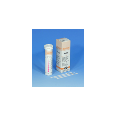 Pack Size: box of 100 strips. Hazard Class /UN Number: Not Restricted. Storage Temp: Room Temperature. Test sticks for the semi-quantitative determination of nickel (Ni 2+ ) in solutions. Gradation of scale: 0-10-25-50-100-250-500-1000 mg/l Ni 2+ white to light red. If the reaction color does not appear on the color scale, larger quantities of interfering ions (Co 2+ , Hg + ) are present. To eliminate these interferences, follow the procedure given in the instructions for use provided with the test sticks.