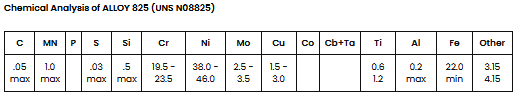 Inconel - Model 825 -Nickel Iron Chromium Alloy