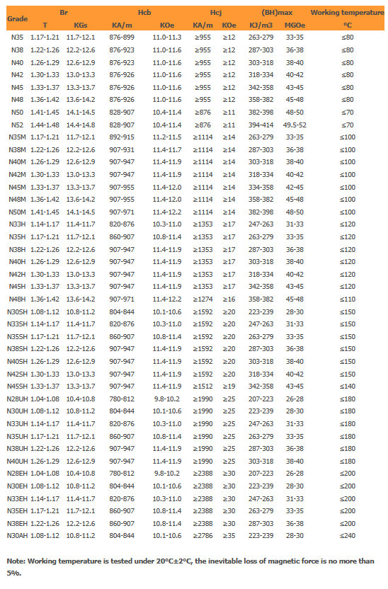 NdFeb, also called NIB, Neo, stands for the magnetic material Neodymium. As a type of strong rare-earth magnet, this material is made of alloys with neodymium, iron and boron, and it's widely used for magnetic products. Magnetic Properties of NdFeB please see the content page.