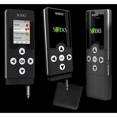 The SOEKS Nitrate tester is used for instant evaluation of the nitrate content in vegetables, fruits, fresh meat, and products used for children`s food. Checking the content and the amount of nitrates in the analyzed product is achieved by piercing the product with the probe located at the base of the device. Unlike outdated devices that have a needle to itemize food products in combined groups, the SOEKS Nitrate Tester is pre-programmed with the MPC (maximum permissible concentration) for each specific product. Simply switch the device on, choose a product from the list, and instantly view the results. The exact amount of nitrate content in the analyzed product will be displayed, in addition to recommendations on suitability for consumption: Normal Nitrate Concentration - Safe, Insignificant Excess of Standard - Reasonably safe, Significant Excess of Standard - Best to avoid Dangerous Concentration of Nitrates - DO NOT EAT.