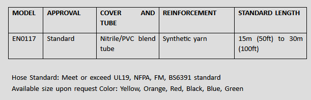 Lexus Hose is Nitrile rubber covered fire hose and manufactured using a unique process that permanently bonds the nylon 6.6 reinforcement to the nitrile rubber cover/liner.This type 3 hose is an easily coiled, non-kinking, high flow, lightweight premium quality hose that resists abrasion, chemicals and weathering by ozone. Application: These large diameter hoses for water supply Municipal and Industrial firefighting, Premium solution.