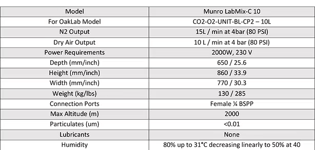 Providing both the Nitrogen and Compressed Air You Require. The Apex Munro LabMix-C generators are designed to provide the Nitrogen and Compressed Air required by Okolab gas mixers. As with most of the models in our range the Munro LabMix-C generators are mobile to allow easy repositioning and installation under a workbench. Whilst our Munro LabMix-C models are setup to match the requirement of Okolab gas mixers they can provide flexibility to match alternative system requirements. We can customise the purity, flow rates and delivery pressures to suit your specifications.