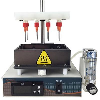 Reducing the disruptive capacity of solvent drying-off processes is critical for laboratory applications, particularly for high-throughput laboratories. Nitrogen blow-down method is often preferable for high-throughput evaporation for well plates and test vials.