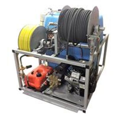 Fitted with 23HP V Twin petrol engine. Electric start. Heavy duty pump, 3 piston with gearbox and ceramic pistons. 500 litre water tank. Power Reel with 90 metre high pressure hose. Filling reel with 50 metres of hose. Pulse Jet, 3 Drain Jets & Wash down hand lance. Weight – 400kg