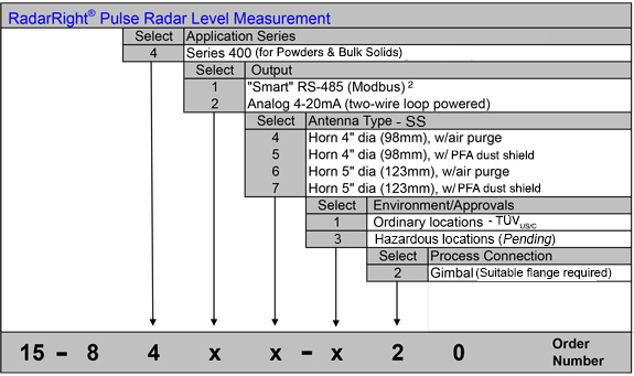 RadarRight - Model Series 400 -Non-Contact, Radar Level Sensor for Powders and Bulk Solids