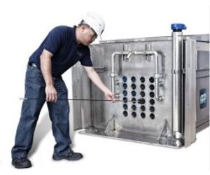 Changing lamps in Enaqua’s Non-Contact UV disinfection system is similar to changing a fluorescent lamp in an office lamp fixture. This is due to the fact that Enaqua’s UV lamps are not submerged in water and therefore do not have to be covered in quartz-sleeves, which simplifies the total system design. Each lamp takes less than 1 minute to change and does not require interruption of the hydraulic flow, shut down, or bypassing of the UV system.