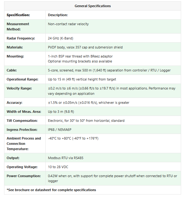 With excellent low velocity measurement capabilities, enhanced beam-width, built-in tilt compensation, rainfall interference discrimination, and low-power consumption with Modbus output, the Pulsar Measurement FarSight™ is the right choice for demanding remote or mains-powered velocity applications.