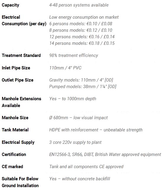*Certified by EN-12566-3, SR66, British Water, UK2020 Septic Tank Upgrade Regulations, CE marked