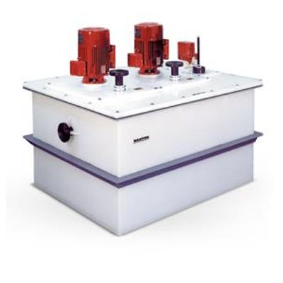 are molded of solid, inert polypropylene (PP), polyvinyl chloride (PVC), chlorinated polyvinyl chloride (CPVC), polyvinylidene fluoride (PVDF) and ethylene chlorotrifluoroethylene (ECTFE) thermoplastics, eliminating pump corrosion and fluid contamination. These systems can be furnished with thermoplastic and thermoset piping and valves that are inert to the fluids being handled.