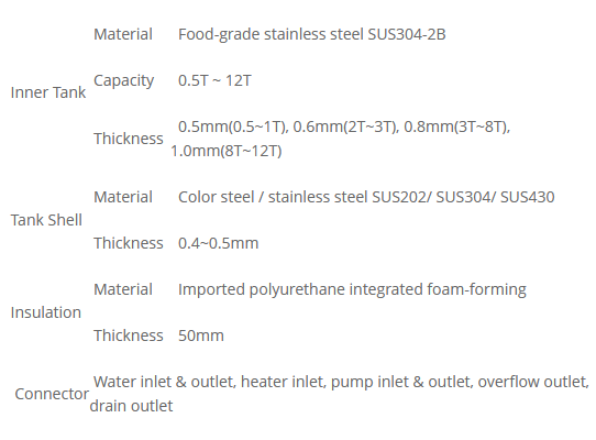 - Outer tank Shell: Stainless Steel