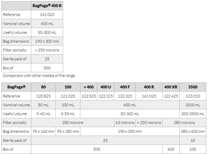 BagPage R is a blender bag with a non-woven full-page filter. Filtration is instantaneous without risk of cross contamination. BagPage R is especially deisgned for pasty samples. Filter porosity: < 250 microns. Compatible with any laboratory blender. Multilayer: reinforced multicoated complex. Rigid and transparent.