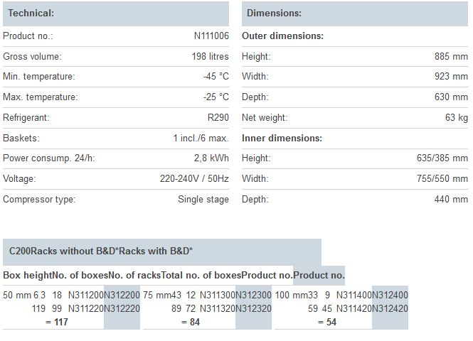 - Service and repair – no regular service is required. In case of a failure, repair can be performed on-site by any trained freezer service engineer.