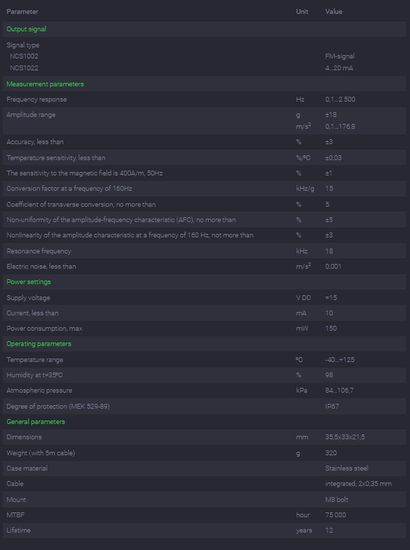 Frequency-modulated output signal enables the signal transmission to a distance of over 1000 m without additional intermediate converters and amplifiers.