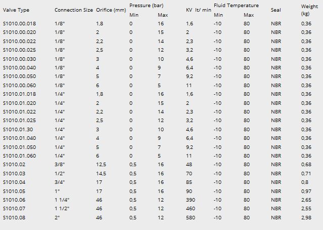 - Pressure: 0,5 bar … 16 bar (0 … 16bar - 1/8"-1/4")