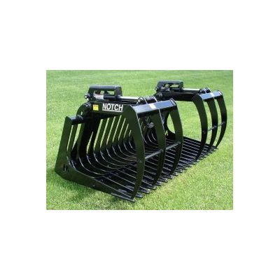 Available sizes: 52", 58", 65", or 72". Constructed of high tensile steel. 32" heel to toe. 3" tine spacing. Grapple & Dual Grapple have twin hydraulic cylinders with casted greasable ends, cylinder covers protect cylinders and hoses. Universal attachment standard, other attachments available.