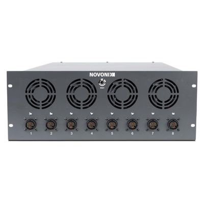 The UHPC 10A Channel Module from NOVONIX is an advanced instrument designed for precise measurement and control of current and voltage in battery testing applications. This module promises high precision and low noise, delivering superior data quality for enhanced confidence in test results. It features a current range from 100μA to 10A, with a resolution of less than 20ppm FSR and an accuracy of 0.01% FSR. The module also offers a voltage range of 0V to 5V, with a resolution below 100μV and an accuracy of 200μV. Integration with RTD temperature sensing allows for high precision temperature measurements with a resolution of ±0.01°C and accuracy of ±0.5°C. The unit is engineered to manage 8 test channels within a compact 19” x 7” x 27” frame, suitable for bench or rack mounting. Its operation is optimized when paired with NOVONIX Thermal Chambers, ensuring the temperature stability essential for precise UHPC experiments.Most popular related searches