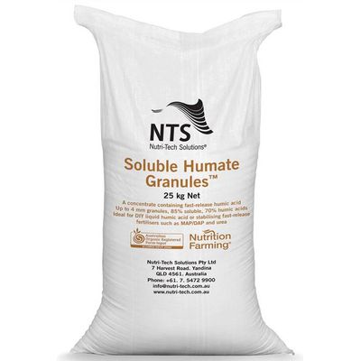The solubility of these granules facilitates a successful fusion with fast-release fertilisers, which is particularly important for reducing the lock-up rate of dry-applied soluble phosphate sources, stabilising urea, chelating and complexing minerals, and buffering high sodium and heavy metalsKey Performance