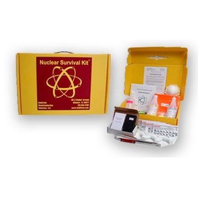 - A convenient and sturdy hard-plastic carrying case easily identifiable as an Nuclear Survival Kit by its yellow and purple color scheme.