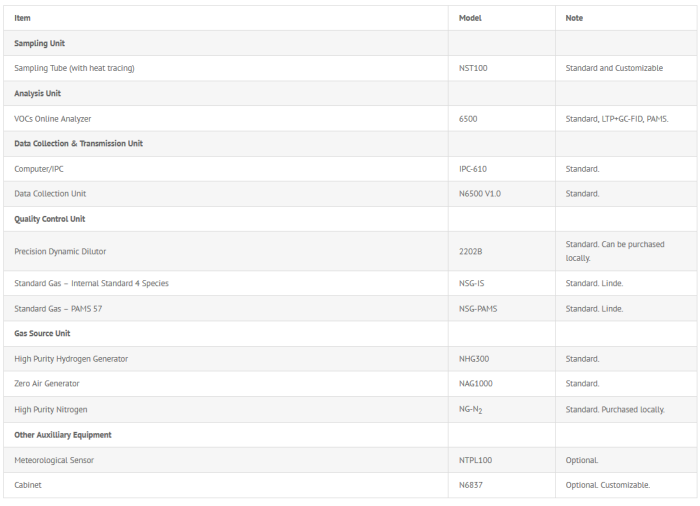 Besides the analysis unit (6500 VOCs analyzer), Nutech can offer the whole VOCs continuous monitoring system including the sampling unit, the analysis unit, the data collection and transmission unit, quality control unit, gas source unit and other auxiliary products.