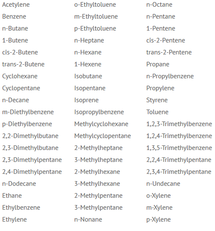 - The innovative design of “doble column separation + Dean Switch + single FID” realizes full PMAS compounds analysis, and can report NMHC/TVOC concentration at the same time. A single instrument can meet the needs of high (C6 -C12) and low (C2 -C5 ) hydrocarbon monitoring, significantly reducing the cost of customers compared to the “high-carbon analyzer + low-carbon analyzer” solution.
