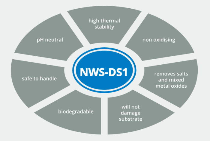 NWS DS1 is an innovative new technology designed to remove rust, lime and scale deposits from practically all water operated equipment quickly, safely and economically. NWS DS1 is primarily an organic salt that behaves as a strong acid and incorporates a highly effective corrosion inhibitor to minimise the risk of possible damage to the underlying metal substrate.