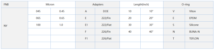 - EG: A 40 inch 0.45um filters with 226/Fin adapters and Viton O-ring
