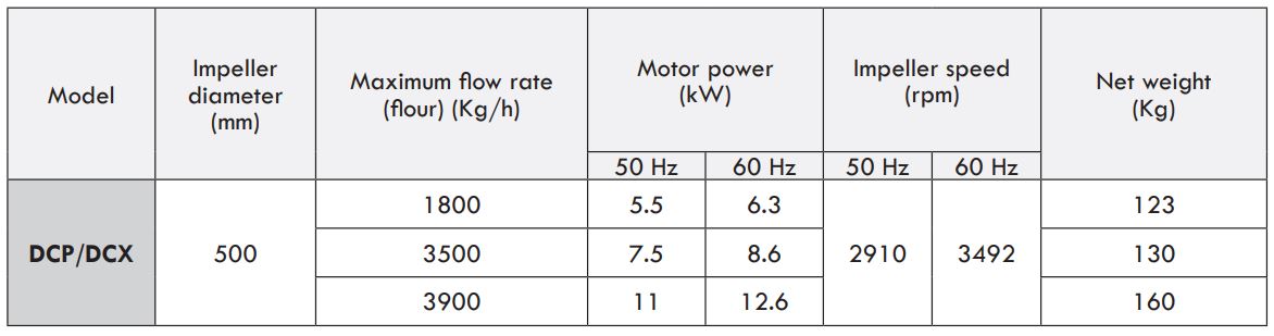 It breaks up medium and fine semolina and plaques of the reduction passages, reducing energy consumption. The break up action, achieved by impact, increases productivity while improving yields and the degree of water absorption in the flour. The machine is characterised by a flat impeller with three sets of screwed pins to break up the plaques. The impeller is dynamically balanced and splined to the driving shaft. The machine can be mounted on the floor or suspended from the ceiling. A stainless steel version is available on request.