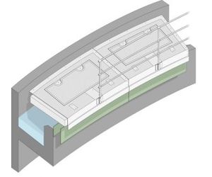 Typically, the NEFCO Odor Control Cover consists of a series of cover platforms molded to the curvature of the clarifier. The width of the platform extends from the tank wall inward over the launder, weir and scum baffle. The integral scum baffle is designed to extend below the water surface and form an airtight seal. Each cover section normally features two large inspection/access hatches that are hinged to open and sit flush within the cover, eliminating any tripping hazards. The cover platform is fastened to the tank wall and supported on stainless steel brackets at the weir wall. The cover can be equipped with inlet and exhaust connections as well as a safety railing.