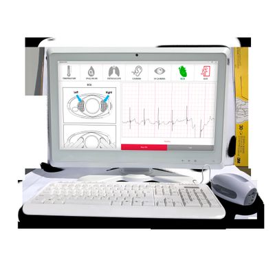Designed for any office or kiosk environment, Includes 2+ MedWands™ or an individual MedWand™ for each employee and all accessories — antibacterial wipes, disposable tips, and tongue depressors for 100+ employees, Contains a powerful 22” medical-grade touchscreen computer and UV sanitizer, Enables on-site or in-kiosk telemedicine exams without having to visit the doctor’s office