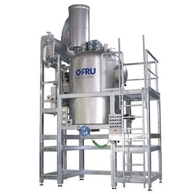 Contaminated solvents or disolver (organic, flammable or aqueous) can be reclaimed or recovered by distillation and subsequent condensation. OFRU Recycling offers a wide range of distillation plants for this recycling purpose. Depending on the distillation requirements, distillation units are used with which 2 to 2000 litres per hour can be processed by means of distillation. Ideally, these distillation plants are used in combination with already existing solvent washing systems in a distillation washing plant combination.