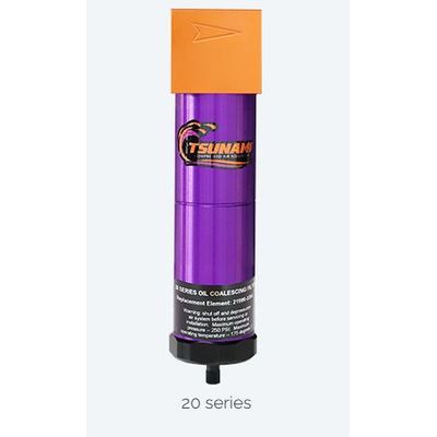 Tsunami oil coalescing filters deliver high grade compressed air and protect critical equipment from oil aerosols and particulates. Tsunami oil coalescing filters use a non-wicking drain layer secured to the outside support core to separate oil and water from the air flow and drain the liquid to the filter sump.