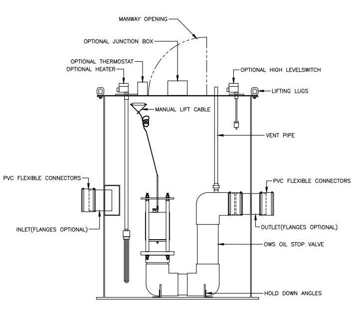 The purpose of OWS TECH’s (OCS) Oil Containment Sumps is to contain bulk oil/fuel spills to their designated areas while allowing storm water to drain in non-spill conditions thus keeping the containment area available for the purpose in which it was intended. The (OCS) is a pre-engineered fiberglass catch basin that comes with our unique Oil Stop Valve installed. This completely automatic fail safe unit knows the difference between oil and water based on the specific gravity principle. The Oil Stop Valve is designed with only one moving part, a weighted cylinder which floats in water and sinks/closes in the presence of oil/fuel with a specific gravity of 0.95 or less. OWS TECH recommends the (OCS) for any application new or existing where bulk oil/fuel is stored and could unexpectedly enter the environment.