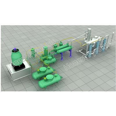 - Raw oil after dewater process goes into reactor. Heating, gasifying and cooling to get petrol and diesel component.