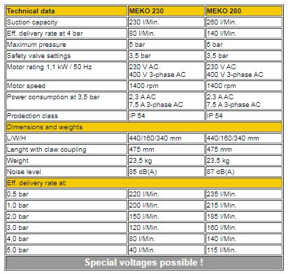 - Three connecting points per compressor head make the MEKO 230/280 unique when it comes to the variability of connections. No matter where the compressor is used, the connections are always in a practical position to reach.