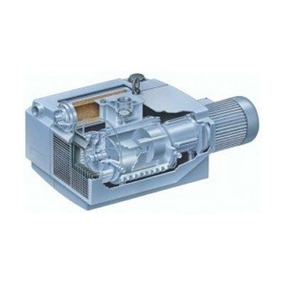 Simplicity of design with only one shaft and direct drive produces robust, long-lasting vacuum pumps with low maintenance and running costs. The vanes are sealed by the metered supply of oil. Already equipped with integrated non-return valves and an efficient oil Separation system, these vacuum pumps can be fitted with other accessories without a problem. The standard-featured circulating-oil lubrication System with integrated oil cooler and cover additionally minimise noise emission. Controlled by a float valve, the oil return suction system also makes these vacuum pumps suitable for use in rough-vacuum applications. Optional water cooling significantly prolongs the life of the oil, even in difficult ambient conditions.