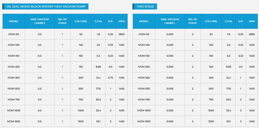 IVC - Model IVOM Series -Oil Seal Mono Block Rotary High Vacuum Pump