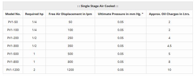 In order to keep it cool, a jacket is constructed around three sides of the pump housing, in which water is made to circulate for keeping the temperature of vacuum pump under control and retaining the performance at its best. In this model an inbuilt device, known as Gas Ballast is provided, which effectively checks to a large extent condensation of the water vapours which otherwise would not only had contaminated the oil, but had also diminished the performance of the pump.