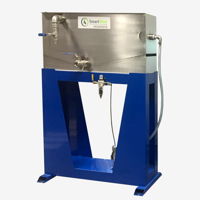 SmartSkim`s multi-patented suction skimmer is mounted in your tank and continuously removes the topmost oily layer. Skimmed oily fluids are pumped through the separator where floating contaminants are separated. Clean fluids return by gravity to the source tank. Making maintenance fast and easy, the oil separator`s open channel platepack system separates and removes floating oils and solids by gravity only.
