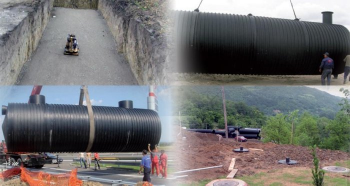 They are used for treatment of atmospheric waters from large areas (traffic routes, parking lots, squares...) where discountinual occurrences of top flows are possible. That way it is ensured that the first wave of soiled water is introduced into the separator, and the remaining quantity of rainfall from the rinsing area is led over the bypass.