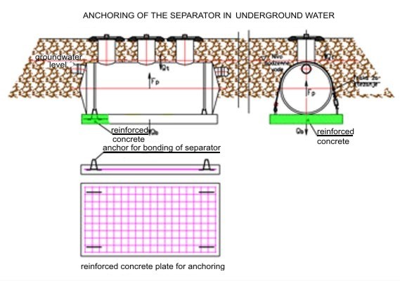 - In case of fitting separators into the soil with underground waters attention must be paid to lift forces.